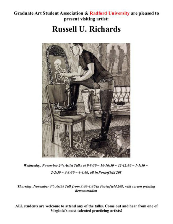 Fun residency in which I gave several talks and a silkscreen demonstration to art students at Radford University.